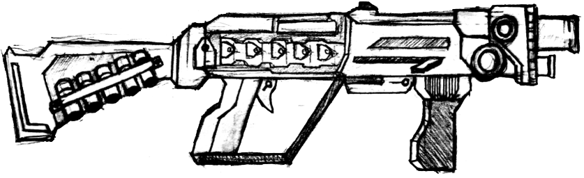 Altamente manejable y de peso regular, este rifle supone la fuerza principal de las tropas militares de PROELIUM. Cuenta con un modo de disparo a ráfagas para combatir hordas y un modo de disparo único para blancos específicos. El mango estabilizador permite un mayor control para el modo a ráfagas.